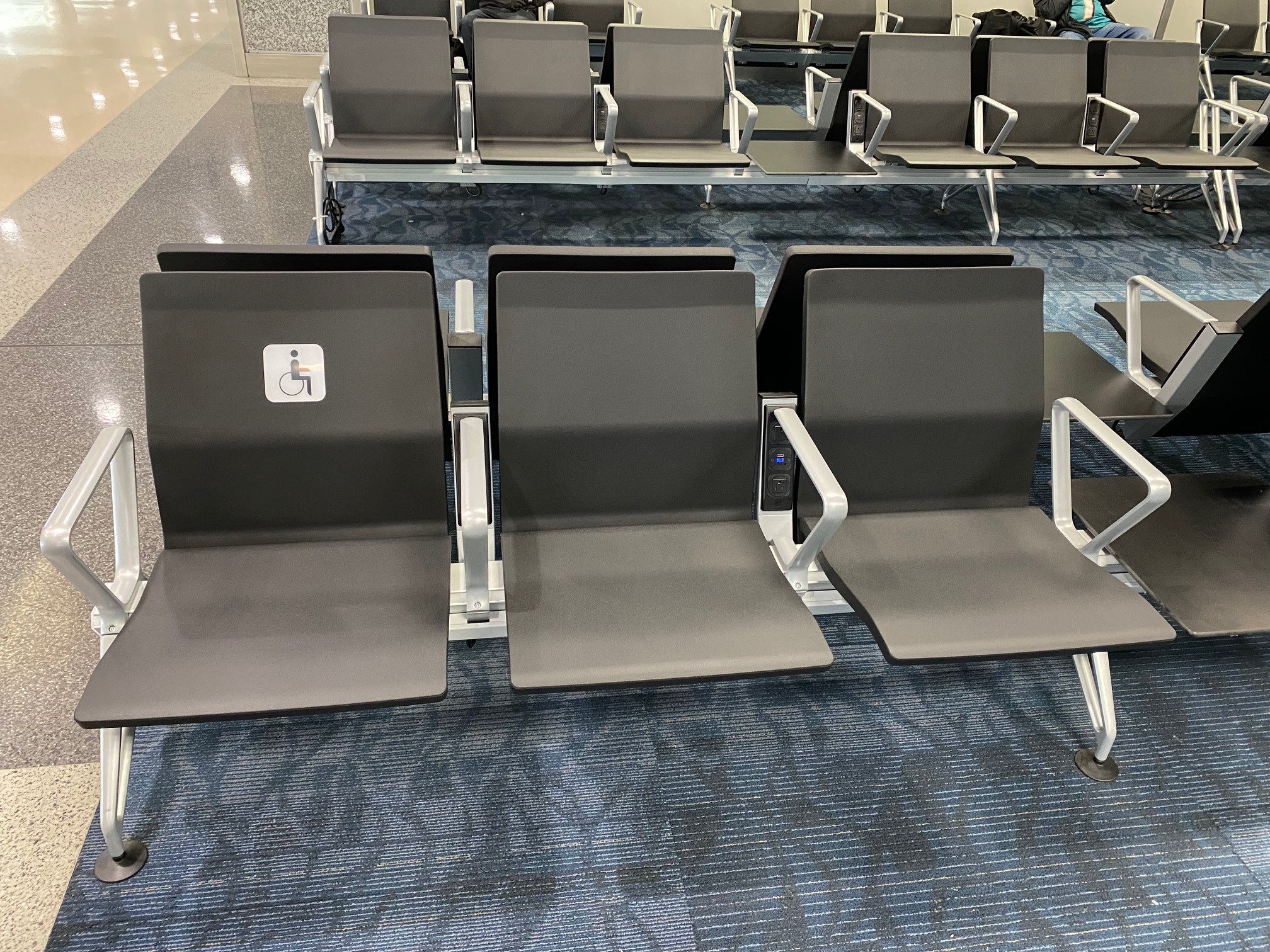 Additionally, Vitra seating has been integrated into specific gates within Concourse D & F, as well as in pre- and post-security ADA seating areas, installed as part of the project in 2023. These installations were integral to ensuring that all passengers, including those with mobility challenges, had access to convenient and comfortable seating options.